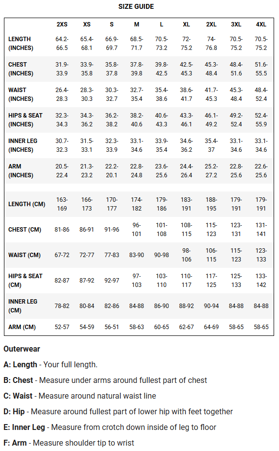 - Insulated with Thinsulate, 250g body, 200g arms